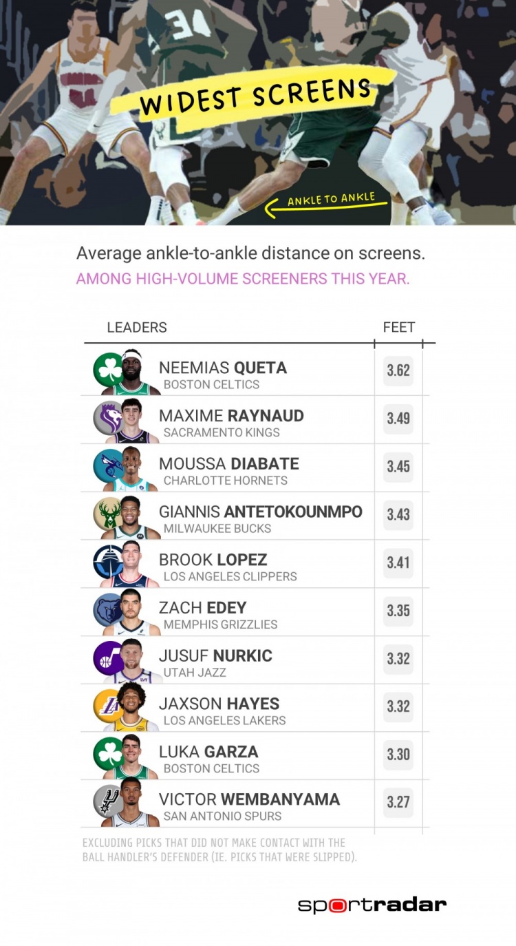 本季掩护宽度排名:绿军两人进前10 字母哥第4海斯第8文班第10