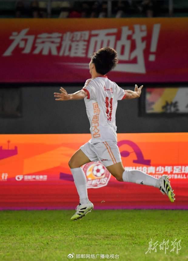 8月31日,2025邯郸银行邯郸U18青少年足球挑战赛临漳魏武雄风队对大名香油队比赛在邯郸体育场举行。图为球员庆祝进球。