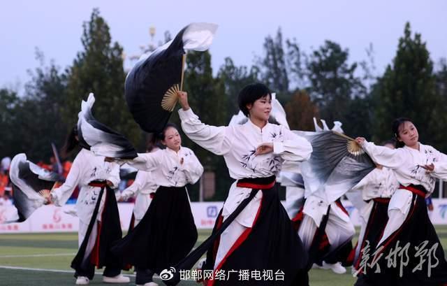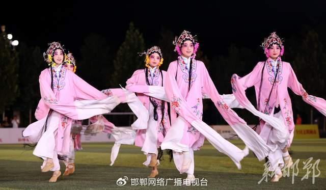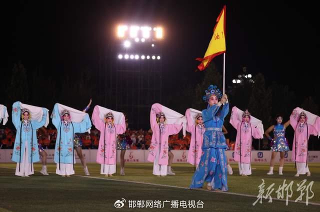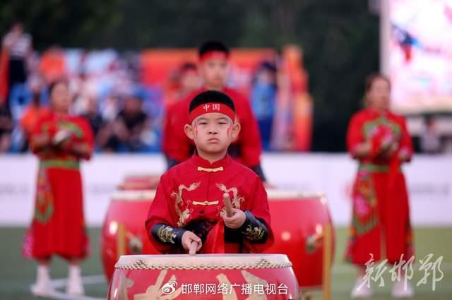 图为赛间精彩的文艺表演。少年们的热血拼抢,为现场观众奉献了两场跌宕起伏、扣人心弦的比赛。而赛前及中场休息期间,浓郁的地方特色文化与创意展演交相辉映,更为赛事增添了别样魅力:肥乡非遗民俗“跑竹马”灵动有趣,广平啦啦队表演活力四射,武安传统鼓阵表演荡气回肠,永年太极扇舞刚柔并济……