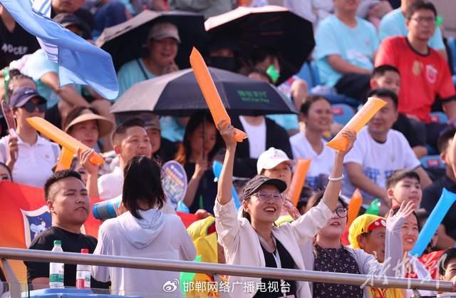 8月31日,魏县梨乡水城体育中心,啦啦队为球队呐喊助威。